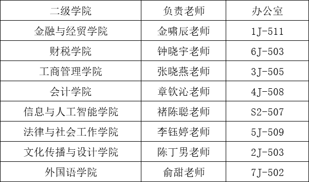 (二)各二级学院具体联系老师如下图: