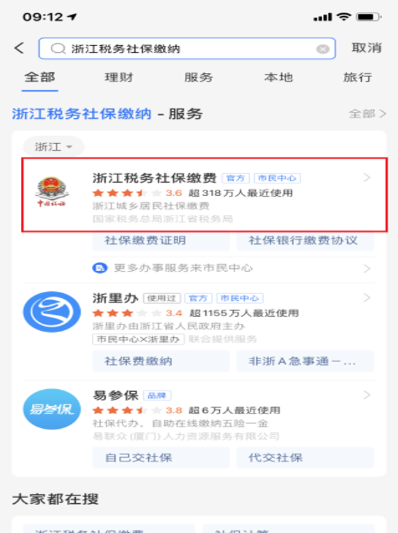 1、通过“支付宝”APP搜索“浙江税务社保缴费”或扫二维码,进入;