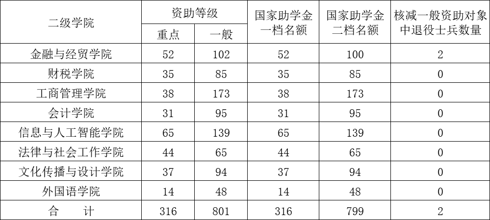 根据省资助管理中心下拨名额,结合2025-2026学年认定的重点资助对象与一般资助对象情况,现将普通国家助学金名额分配如下: